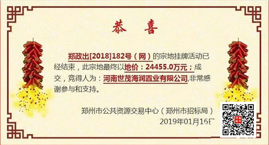 该地块起始价为6987.0万元,竞得经过12分钟的激烈争夺,最终被河南博鼎实业有限公司(背后股东为河南中博股份有限公司)以17137万元竞得,折合2457.2万元/亩,足见该地块的价值之大。