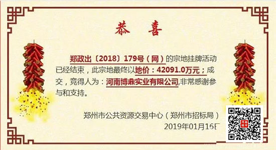 该地块位于管城区石化路南、未来路西,使用面积28492.52㎡,约合42.74亩,土地性质为城镇住宅(地下为交通服务场站),容积率>1.1,<3.8,被河南博鼎实业有限公司以起始价起始价42091万元摘得,折合948.82万元/亩。